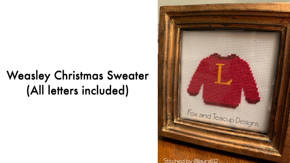 The Weasley Sweater makes a great gift stitched either on Aida and framed for the recipient, or stitched on plastic canvas and trimmed to make a lovely Christmas ornament!